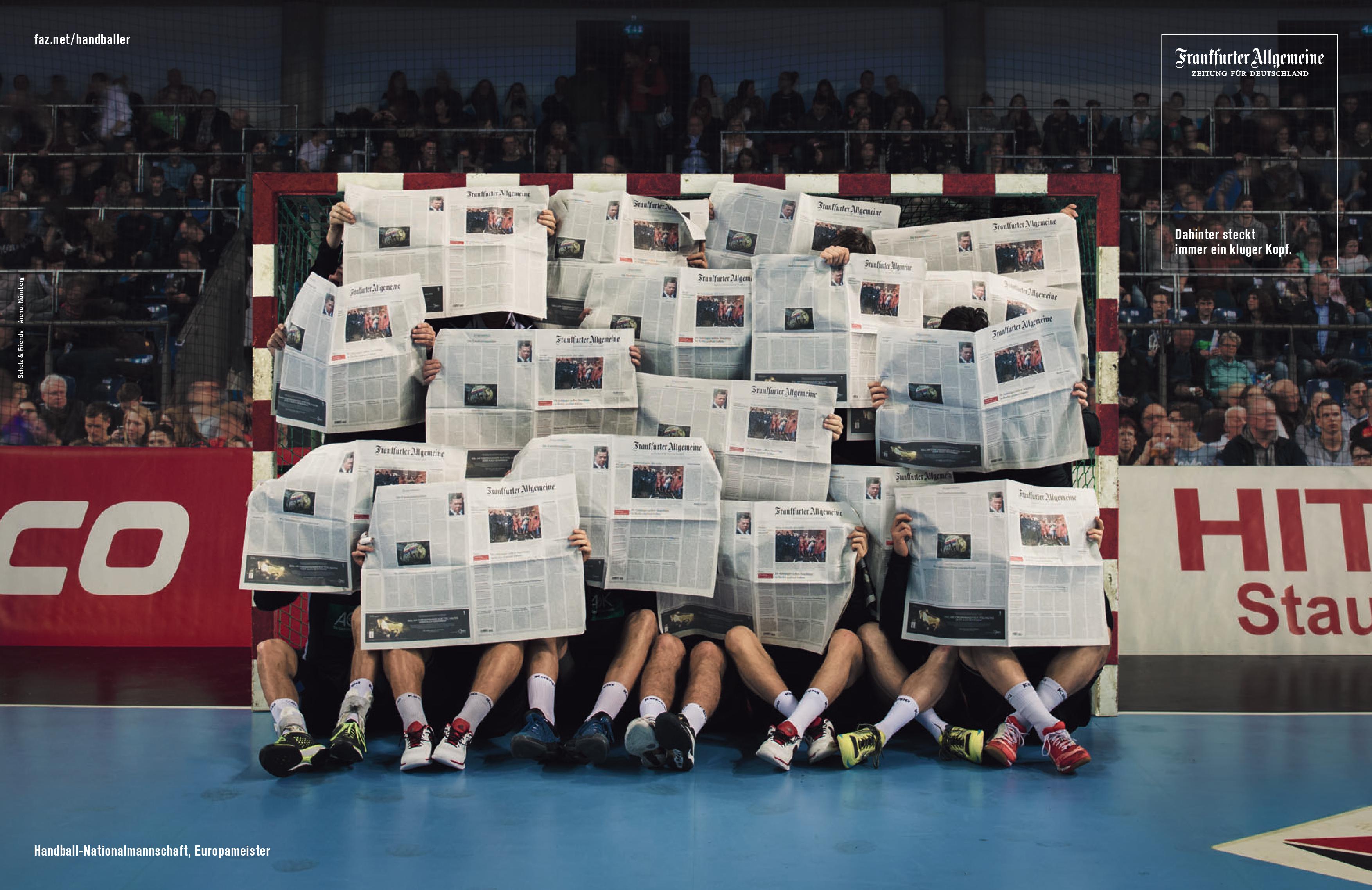 Thomas Lindner, Vorsitzender der Geschäftsführung der Frankfurter Allgemeinen Zeitung: „Die jungen deutschen Handballer haben durch eine großartige taktische und spielerische Leistung ganz Europa begeistert. Mit unserem neuen Kampagnenmotiv gratulieren wir zur Meisterschaft und dieser herausragenden Leistung. Wir freuen uns, dass wir zum ersten Mal eine ganze Mannschaft ausgezeichneter Spitzensportler zu unseren Klugen Köpfen zählen dürfen.“